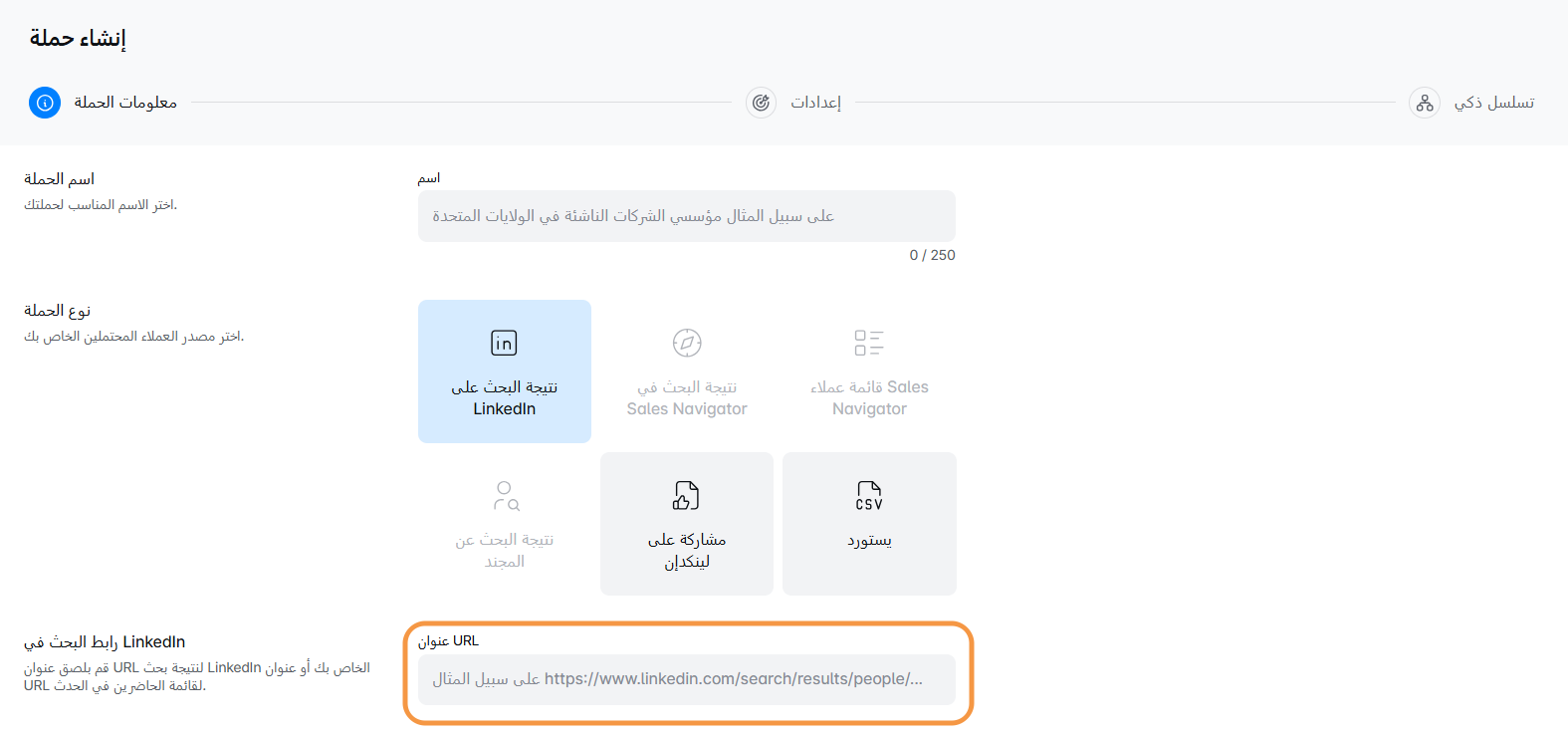 - بعد ذلك، فقط قم بنسخ ولصق الرابط مع نتائج بحث LinkedIn الجديدة الخاصة بك. بدلاً من ذلك، يمكنك استيراد ملف CSV.