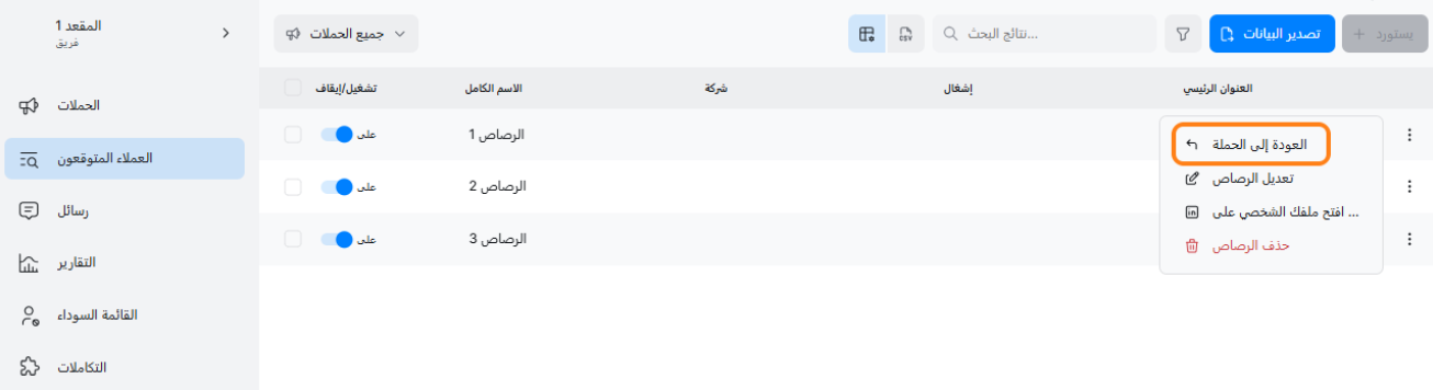 - هل تحتاج إلى إعطاء العملاء المحتملين دفعة أخرى؟ يمكنك بسهولة إعادتهم إلى الحملة لجولة جديدة من التفاعل.