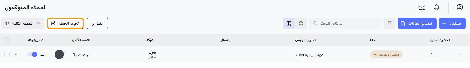 - ابحث عن الحملة التي تريد عملاء جدد فيها.