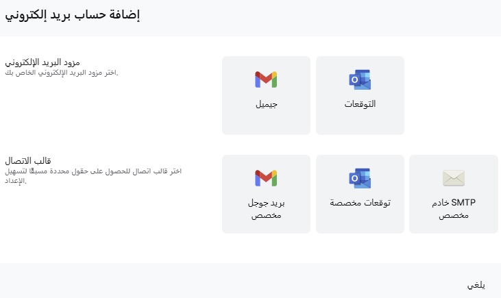 يمكنك ربط مزودي البريد الإلكتروني الجدد وإدارة جميع قنوات بريدك الإلكتروني في مكان واحد. سواء كنت تقوم بتقسيم اتصالاتك أو تشغيل حملات إضافية، فإن منصتنا تجعل من السهل اختيار البريد الإلكتروني المناسب لهذه المهمة. اختر مزودك، واتبع التعليمات وقم بربط عدة بريد إلكتروني للاستمتاع باستراتيجية أكثر قوة من خلال حماية سمعة بريدك الإلكتروني 🚀