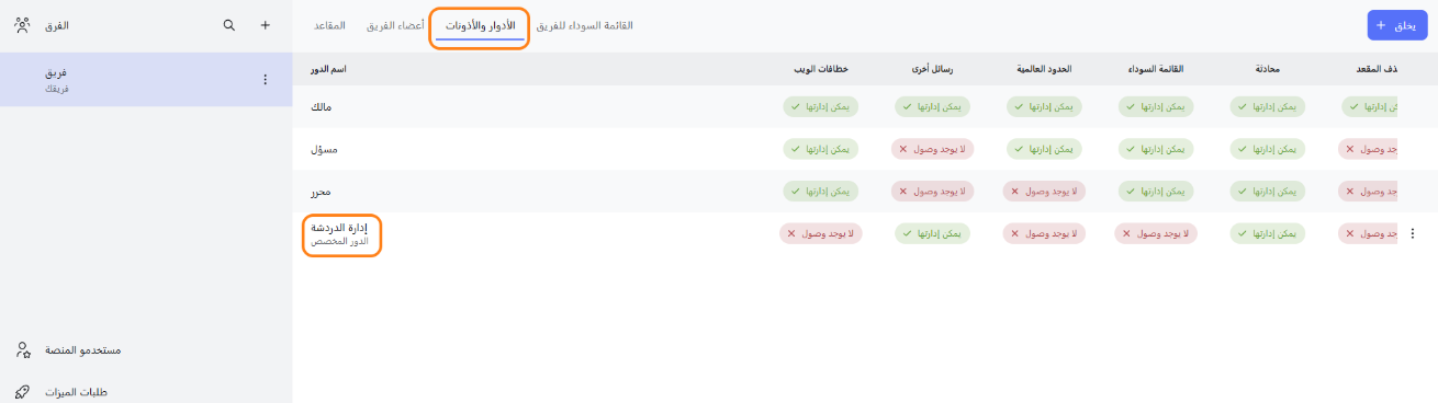 الأدوار المخصصة تتيح لك تخصيص الأذونات لتناسب احتياجات فريقك الفريدة.