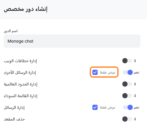 في النافذة الجديدة، اختر الأذونات المحددة لدورك المخصص - مثل اختيار أفضل التوابل لطبقك. إليك ما يمكنك إضافته إلى المزيج: