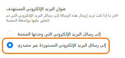 - في خطوة البريد الإلكتروني، اختر "Emails imported by your source" كخيار.