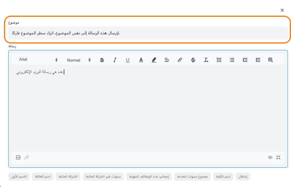 - إذا كنت ترغب في إرسال رسائل البريد الإلكتروني في نفس السلسلة، اترك سطر الموضوع فارغًا.