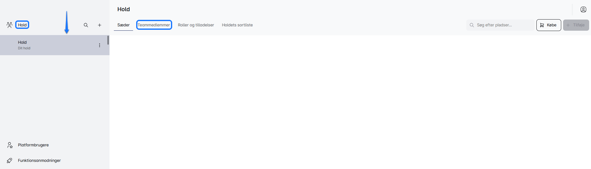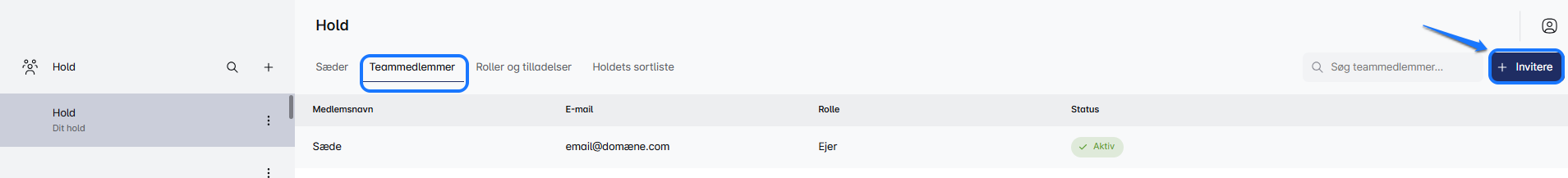 Hvis du kun har ét team, skal du blot klikke på fanen 'Teammedlemmer' for at komme i gang.