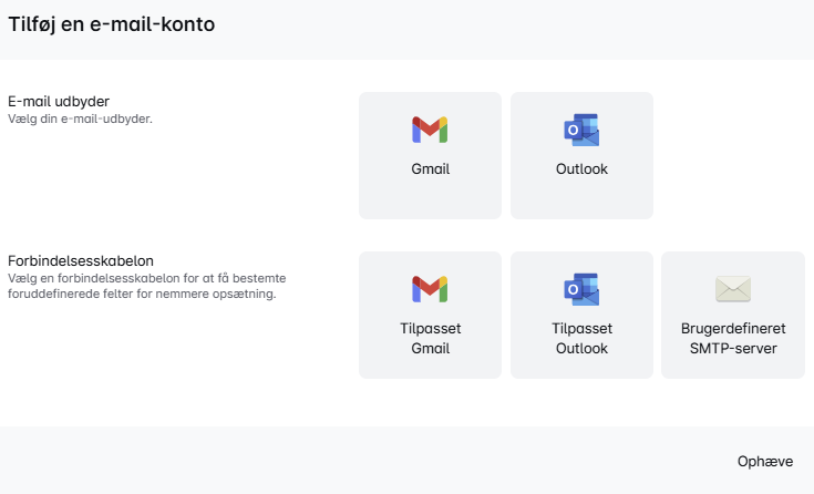 Du kan forbinde nye e-mailudbydere og administrere alle dine e-mailkanaler ét sted. Uanset om du segmenterer din kommunikation eller kører yderligere kampagner, gør vores platform det nemt at vælge den rigtige e-mail til opgaven. Vælg din udbyder, følg anvisningerne og tilslut flere e-mails for at nyde en mere kraftfuld strategi ved at beskytte dit e-mailomdømme 🚀