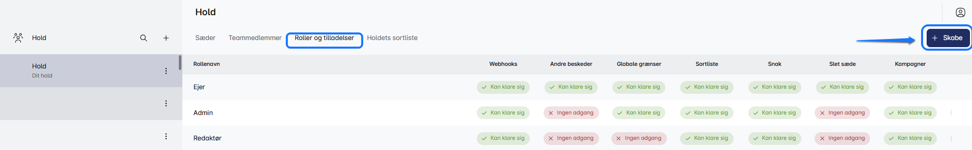 Gå til fanen 'Roller & Tilladelser'