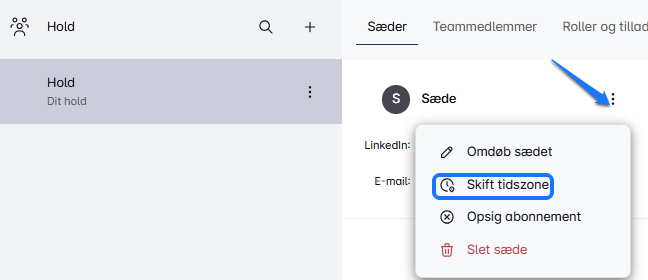 3. Vælg 'Skift tidszone' 🌐