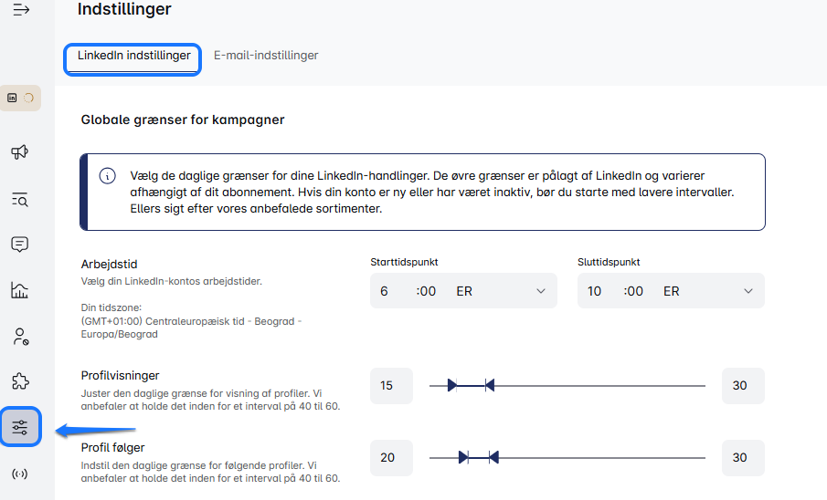 ⚠️ Advarsel: Hvis du forbinder en anden LinkedIn profil til denne kontoplads i stedet for den oprindelige, vil tidligere kampagner, der blev oprettet, stoppe med at fungere. Vi anbefaler at fjerne eventuelle gamle kampagner, du har, før du afbryder den nuværende LinkedIn profil og forbinder en ny. 📌