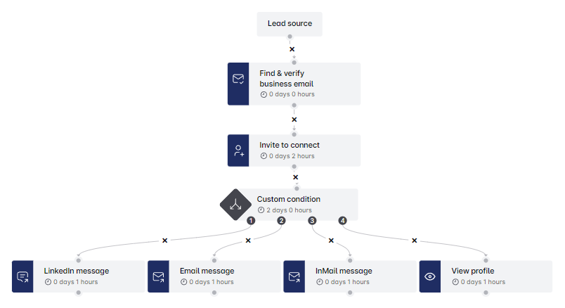 Udnyt Custom Conditions i Leadriver til at optimere dine kampagner og arbejdsgange. Med op til fem skræddersyede outputs kan du håndtere leads baseret på forbindelsesstatus, e-mail-verifikation og InMail-muligheder, hvilket skaber problemfri, effektive sekvenser. Begynd at bruge Custom Conditions for at løfte dine kampagner og engagere dig smartere! 🚀