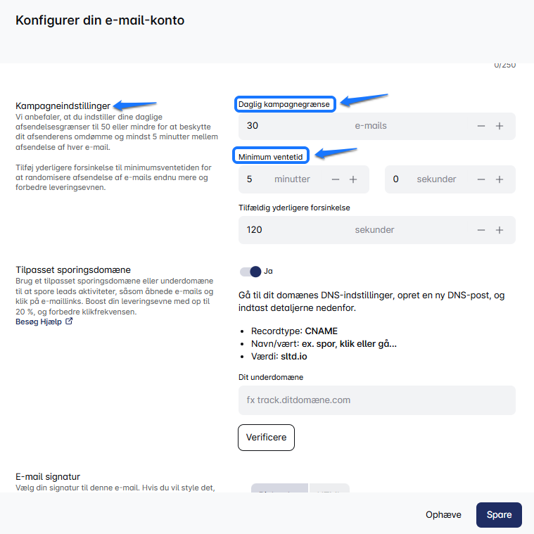 💡 Pro tip 1: Opsæt en forskellig signatur for hver e-mailkonto, du tilføjer. Dette vil øge personaliseringen og forbedre leveringsmulighederne.