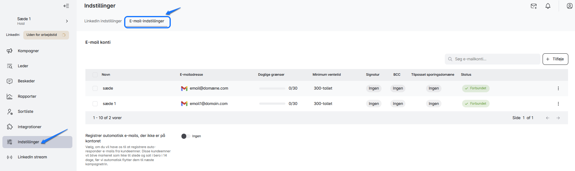 Nu er det tid til at tilføje og forbinde dine e-mails til Leadriver med blot et par klik. Her er trin-for-trin guiden 👇