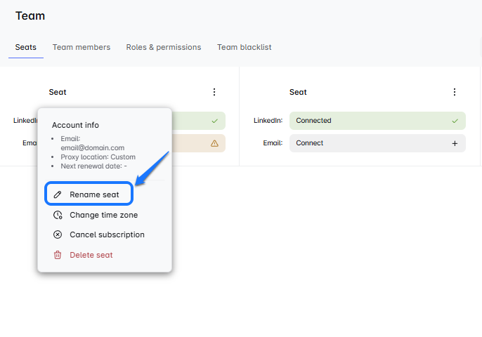 2. Klicken Sie auf „Sitz umbenennen“ ✏️