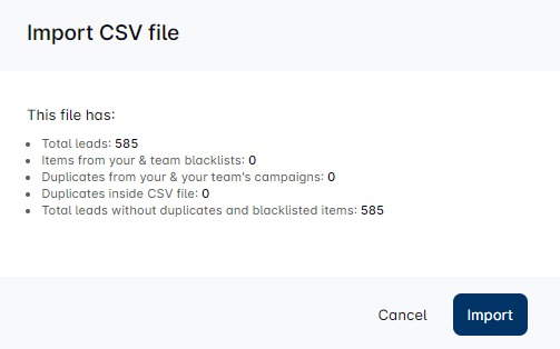 - Duplikate: Überprüfen Sie auf Duplikate in den Kampagnen Ihres Teams und innerhalb der CSV-Datei selbst.