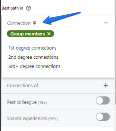 - Scrollen Sie durch die Filteroptionen, bis Sie den "Gruppenmitglieder"-Filter finden. Mit dieser Funktion können Sie Personen ansprechen, die bestimmten LinkedIn-Gruppen angehören.