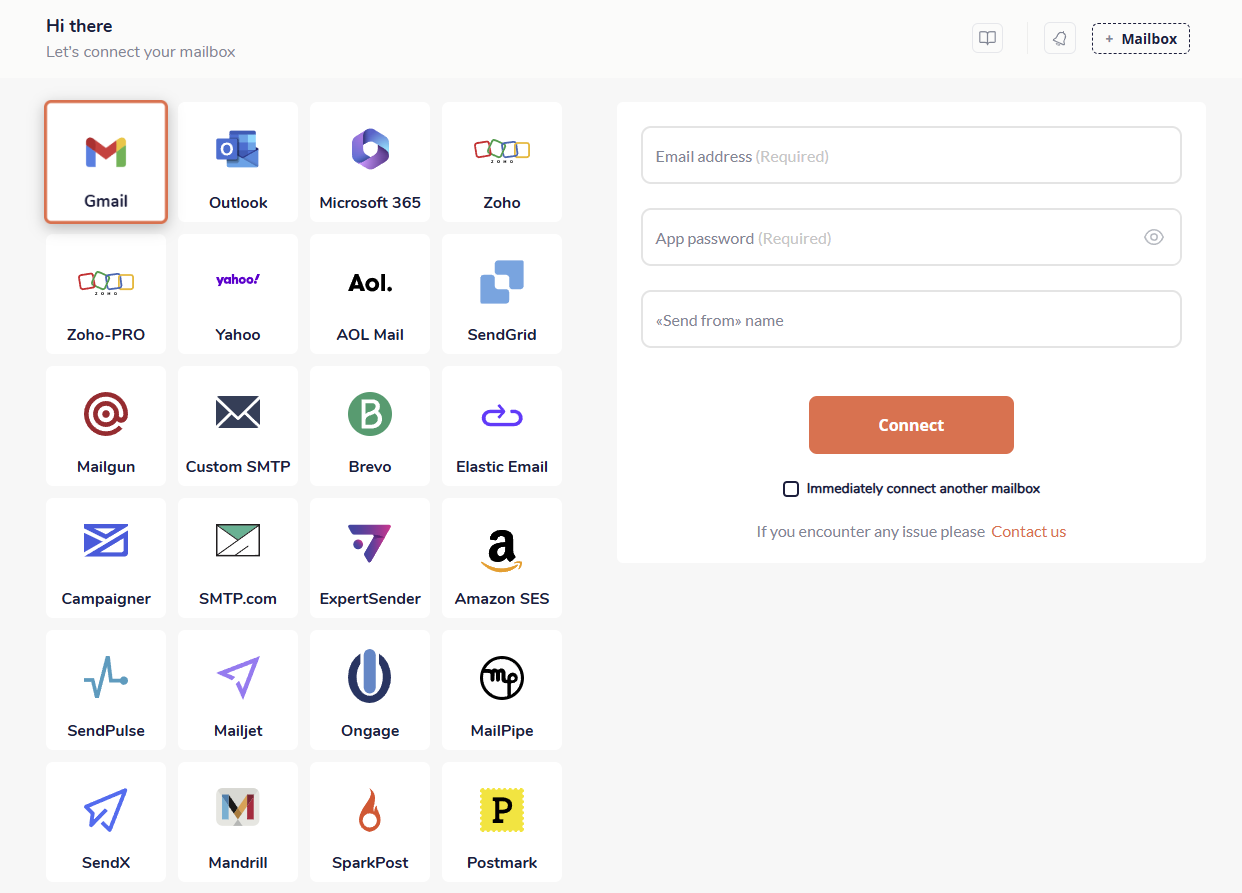 3. Nachdem Sie sich in Ihr InboxFlare-Konto eingeloggt haben, fügen Sie Ihre E-Mail-Konten hinzu - InboxFlare ist mit allen großen E-Mail-Anbietern wie Gmail, Outlook und Zoho kompatibel und unterstützt auch benutzerdefiniertes SMTP.
