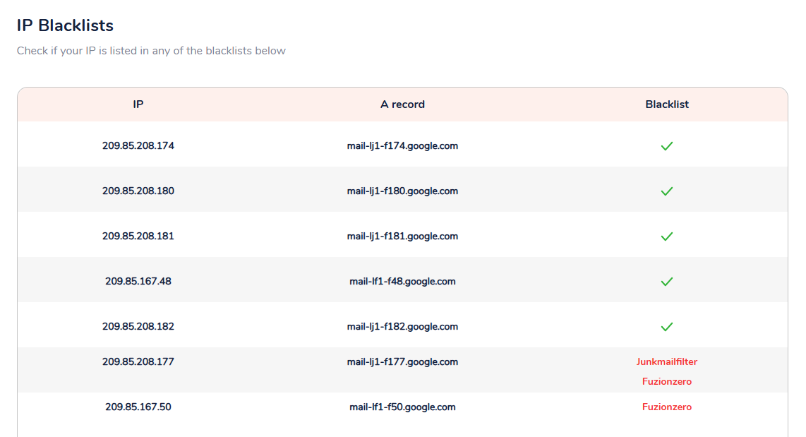 9.1. Überprüfen Sie, ob Ihre IP und Domain auf der schwarzen Liste stehen 🚫