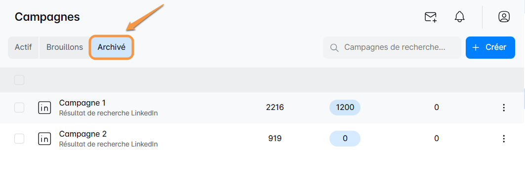 Il suffit de passer à la vue 'Campagnes archivées'. Vous verrez maintenant toutes vos campagnes soigneusement rangées.