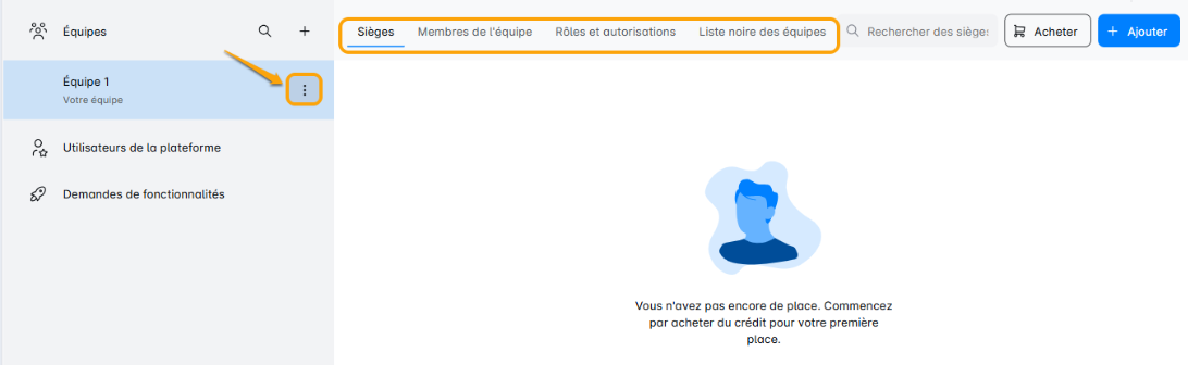 - Transférer des crédits de siège : Souhaitez-vous ajouter plus de sièges à votre équipe ? C'est ici que vous pouvez le faire.