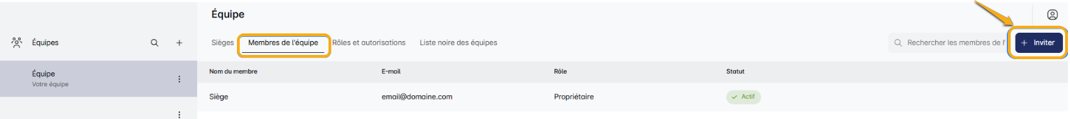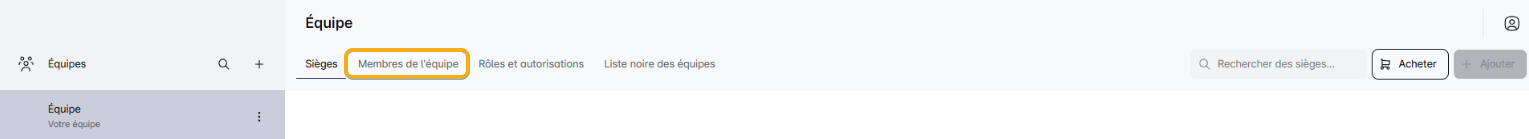 Si vous n'avez qu'une seule équipe, cliquez simplement sur l'onglet 'Membres de l'Équipe' pour commencer.