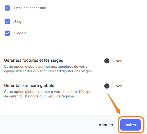 Une fois que vous avez défini toutes les autorisations, cliquez sur 'Inviter'. L'invitation s'envolera vers leur boîte de réception, et une fois acceptée, ils seront prêts à se connecter et à commencer avec votre équipe ! 🚀