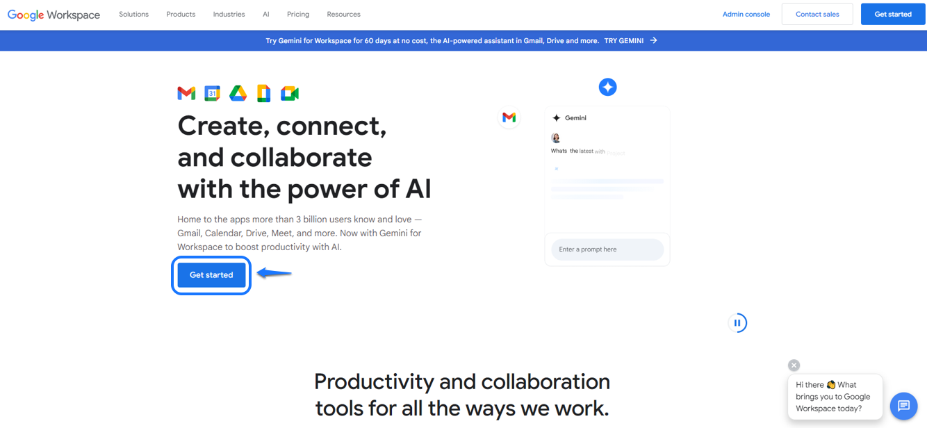 Pour ce guide, nous utiliserons Google Workspace, et le processus est similaire pour tous les autres espaces de travail. Pour commencer, cliquez sur "Commencer" et ajoutez les informations d'inscription.