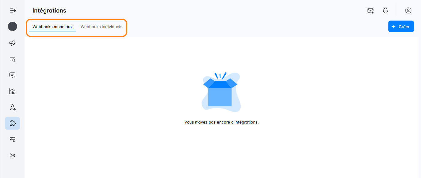 Choisissez si vous souhaitez que les webhooks envoient des données globalement ou pour des campagnes actives spécifiques.