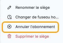 Si vous souhaitez réactiver votre siège après l'annulation, contactez votre administrateur !
