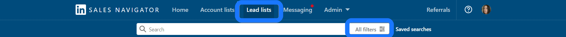 - पहली चीज़ें पहले—Sales Navigator खोलें और अपनी लीड्स लिस्ट बनाना शुरू करने के लिए "लिस्ट्स" पर क्लिक करें।