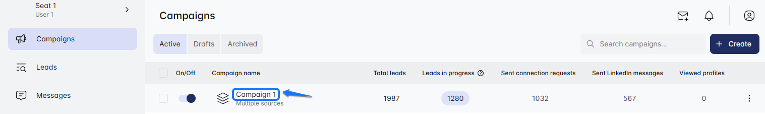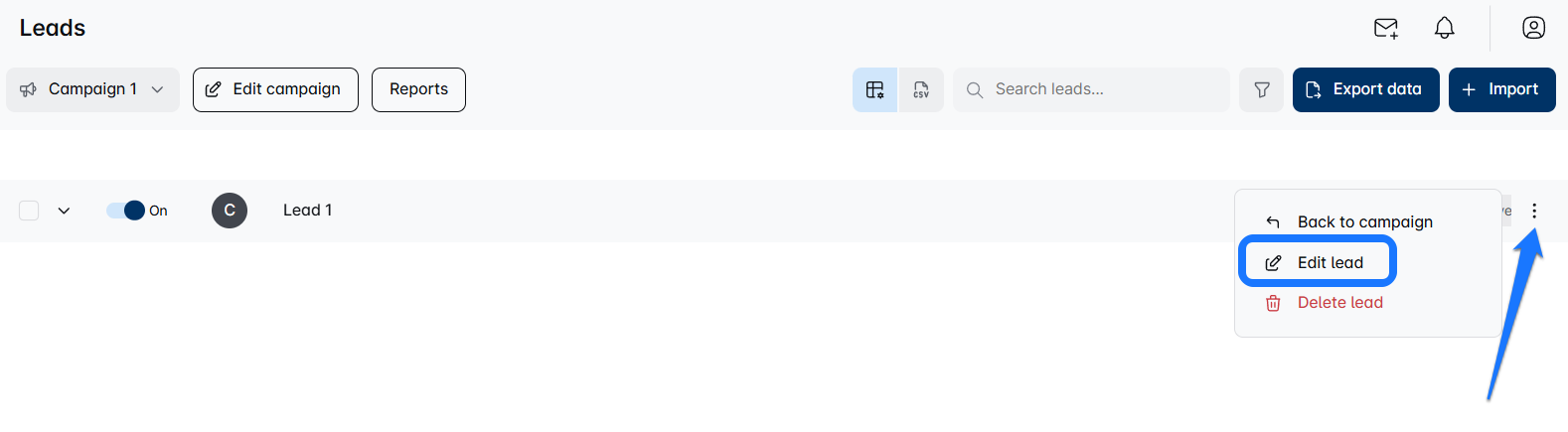 - अपने अभियान के नाम पर क्लिक करके शुरू करें या लीड सूची पृष्ठ पर जाएं और उस अभियान का चयन करें जिसे आप संपादित करना चाहते हैं। यह बस एक क्लिक दूर है! 🖱️