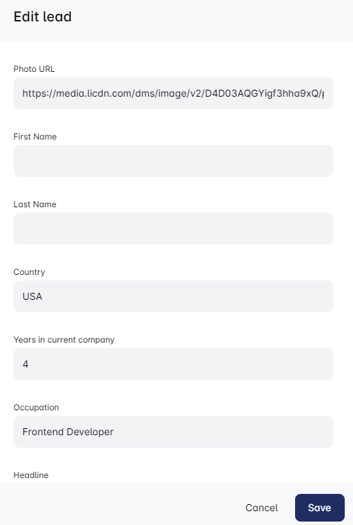 - जैसे लीड का नाम या वर्तमान कंपनी जैसी जानकारी को अपडेट करने के लिए, बस वह नई जानकारी जोड़ें जो आप चाहते हैं।