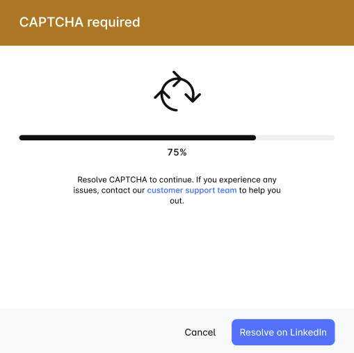 LinkedIn सेटअप करते समय CAPTCHA का सामना कर रहे हैं? 🧩 बस "Try by yourself" पर क्लिक करें, पहेली को हल करें, और सेटअप पूरा करने के लिए PIN दर्ज करें। हम आपके Leadriver अनुभव को सहज बनाने के लिए समर्पित हैं। आनंद लें! 🚀