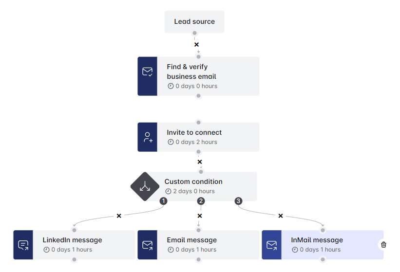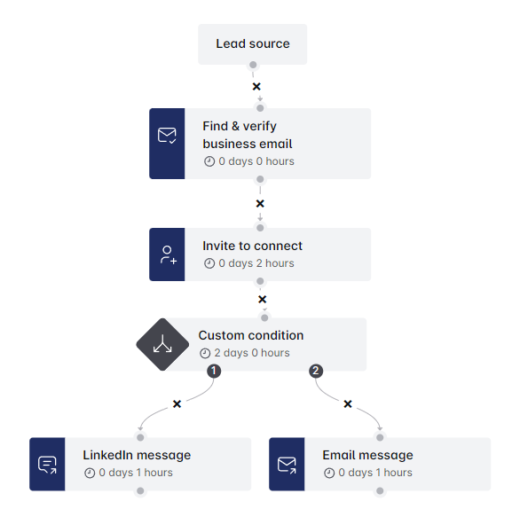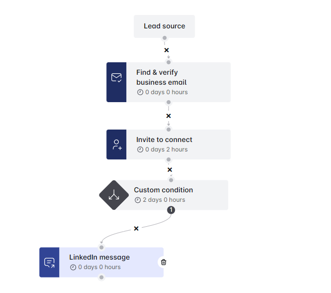 आपने अभी-अभी एक कस्टम कंडीशन तैयार की है जो आपके अनुक्रम के भीतर सभी संभावित परिदृश्यों को कवर करती है। यह सुविधा आपको अपनी आउटरीच को अनुकूलित करने और Leadriver का अधिकतम लाभ उठाने देती है। 🌟