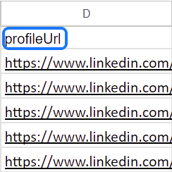 - संयुक्त ईमेल + LinkedIn अभियान के लिए, आपको दो कॉलम की आवश्यकता होगी: एक ईमेल पतों के लिए और दूसरा आपके लीड्स के प्रोफाइल URLs के लिए। सुनिश्चित करें कि प्रोफाइल URLs वाला कॉलम बिल्कुल profileUrl (बड़े 'U' के साथ) नामित हो।