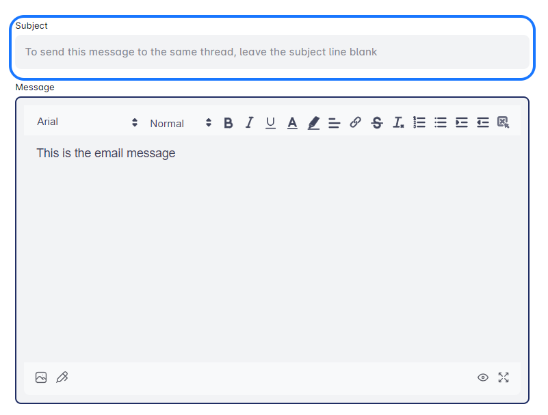 - यदि आप ईमेल को उसी थ्रेड में भेजना चाहते हैं, तो विषय पंक्ति को खाली छोड़ दें।