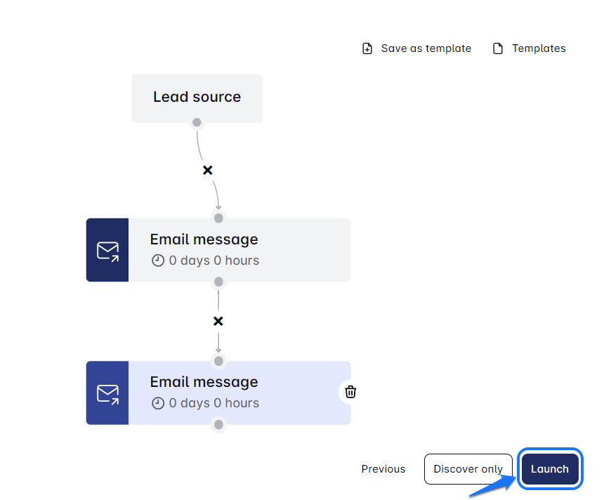 - ईमेल स्टेप में, "Emails imported by your source" विकल्प का चयन करें।