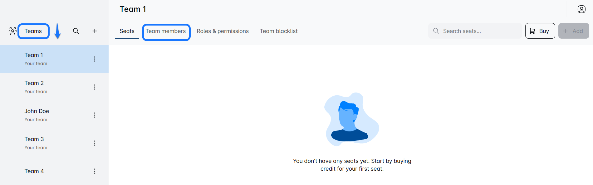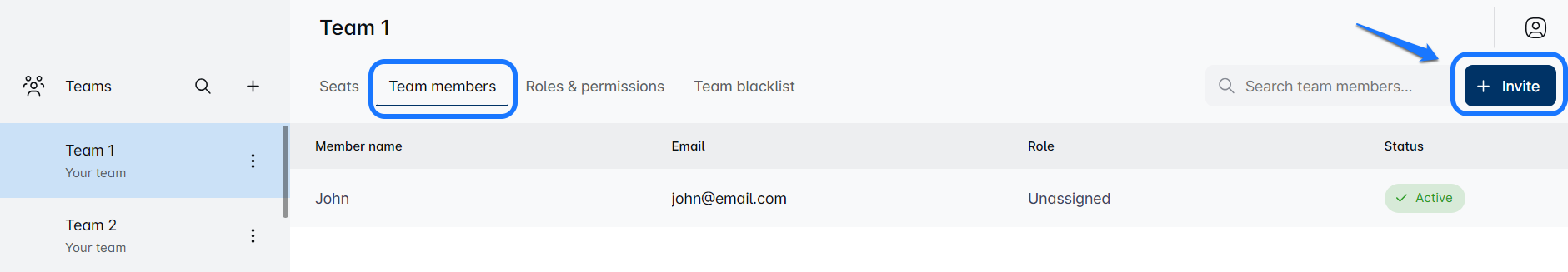 Bagi mereka yang mengelola beberapa tim, pilih tim dari menu sisi kiri dan kemudian pilih tab 'Anggota tim' dari tim yang dipilih. Ini adalah gerbang Anda untuk menumbuhkan kru hebat Anda! 🌱