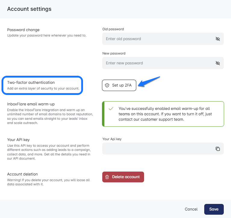 Aktifkan 2FA: Klik "Set Up 2FA". Anda akan melihat layar baru dengan instruksi lebih lanjut.