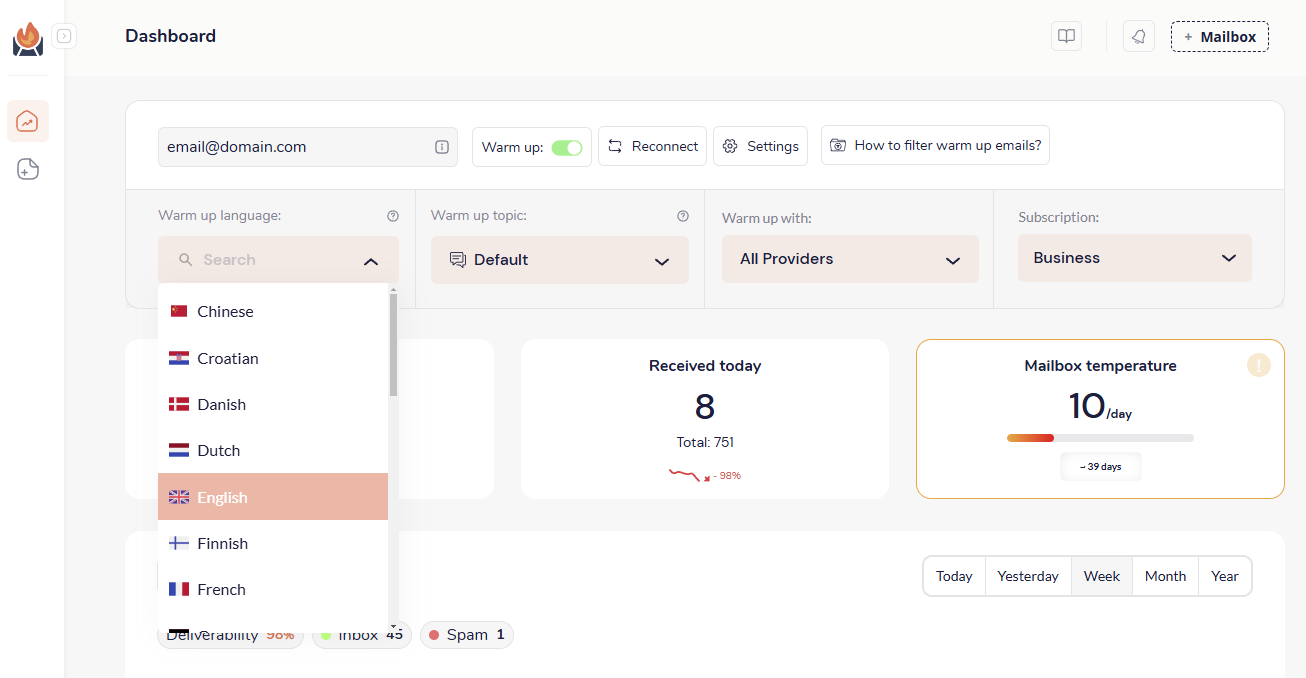 6. Pilih di antara 30+ bahasa, sehingga pemanasan lebih autentik untuk domain Anda 🗣️