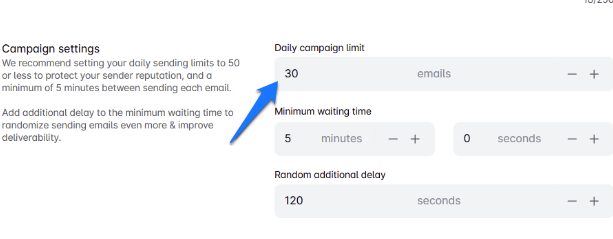 Se la temperatura non è al massimo, vai alla pagina delle impostazioni di Leadriver e, sotto Impostazioni email, modifica l'email di tua scelta e riduci il numero di email che invii al giorno.