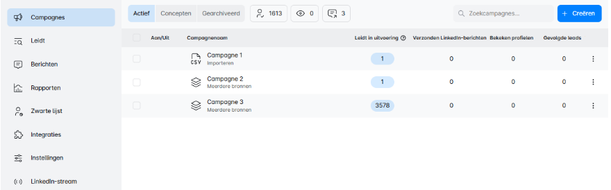 - Totaal aantal leads: Hoeveel leads er tot nu toe zijn ontdekt