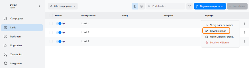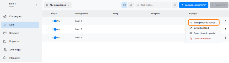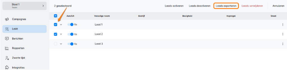 - Heb je je leads nodig in een overzichtelijk bestand? Selecteer de leads die je wilt exporteren en klik eenvoudig op Leads exporteren en krijg de details die je nodig hebt.