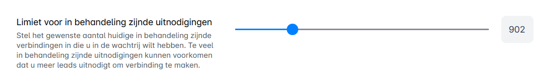 Dit is om u in goede staat te houden met LinkedIn. We raden aan de limiet in te stellen tussen 800-1000 verzoeken. Waarom? Omdat LinkedIn de voorkeur geeft aan echte connecties, niet aan massale verzoeken. Binnen dit bereik blijven verlaagt de kans op accountbeperkingen.
