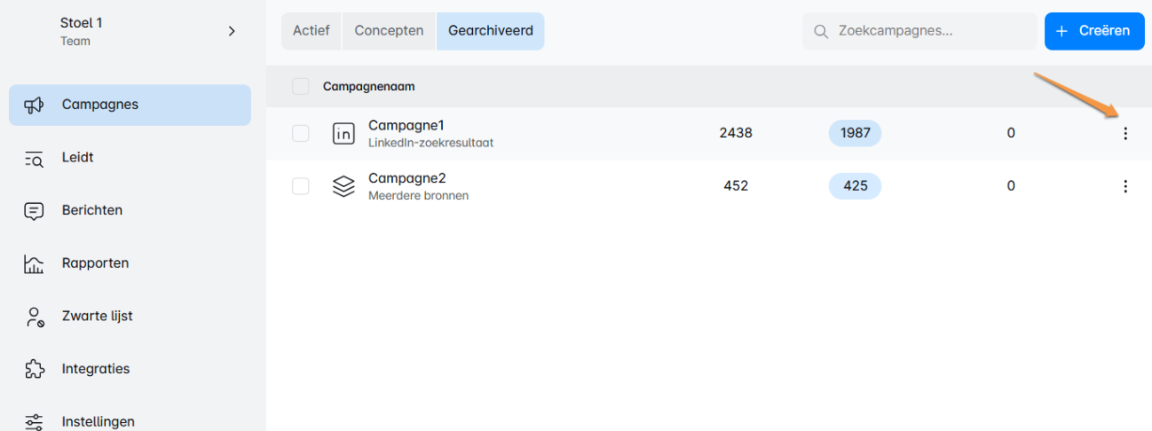 - Campagne archiveren: Wanneer een campagne zijn doel heeft gediend, gebruik je deze optie om deze te archiveren. De gegevens blijven bewaard, maar zullen je actieve campagnes niet verstoren. 💾