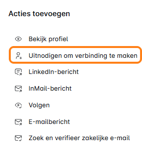 Uitnodigen om te verbinden is een LinkedIn-actie waarbij je leads uitnodigt om lid te worden van je netwerk. Je kunt uitnodigingen sturen naar je 2e- en 3e-graads connecties, maar voor de veiligheid raden we aan om alleen uitnodigingen te sturen naar je 2e-graads contacten.