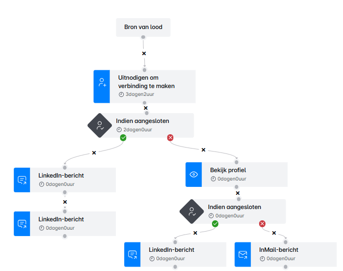Opmerking: Als een lead je verbindingsverzoek accepteert vóór de tijdsvertraging (bijv. 1 dag of 2 uur), gaan ze direct door naar de Bericht stap, zonder te wachten tot de vertraging is afgelopen.