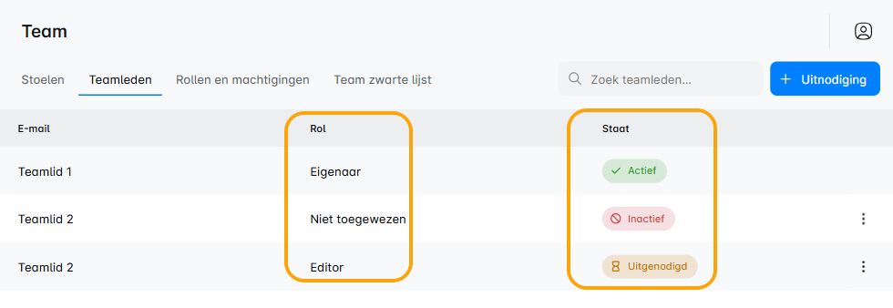 Hier kun je snel zien wie actief is, welke rechten ze hebben en welke rollen ze toegewezen hebben gekregen.