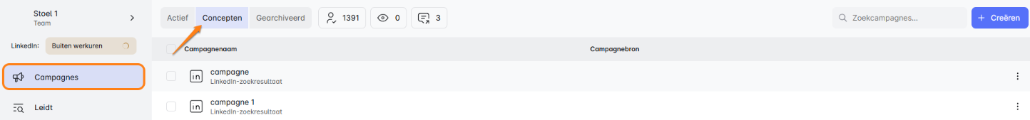 - Ben je benieuwd waar je je conceptcampagnes kunt vinden? Makkelijk zat! Ga gewoon naar het 'Campagnes' dashboard en zoek naar 'Concepten.' Je werk-in-uitvoering campagnes wachten daar op je.