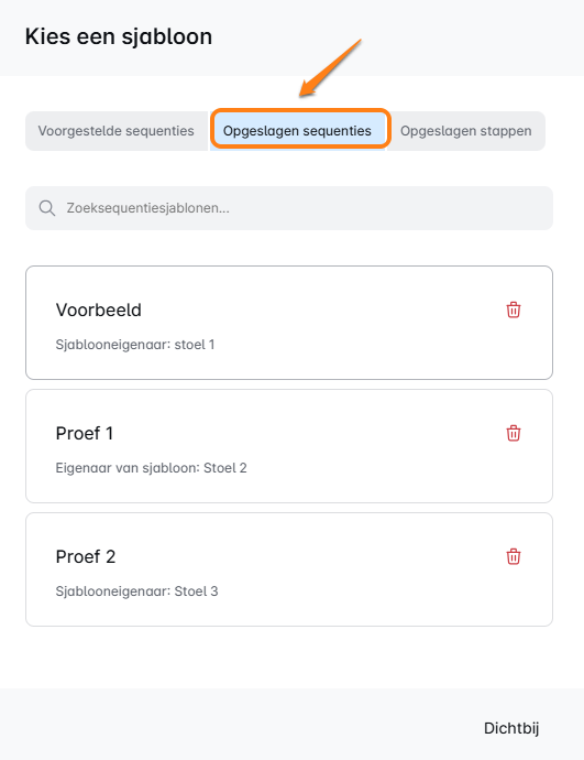 Je kunt al je opgeslagen sjablonen ook direct vinden vanuit de campagnebouwer. Klik gewoon op “Opgeslagen reeksen” en voilà—al je opgeslagen juweeltjes zijn binnen handbereik.