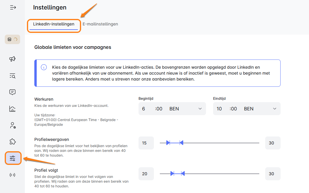 3. Ga naar het tabblad LinkedIn-instellingen🔗